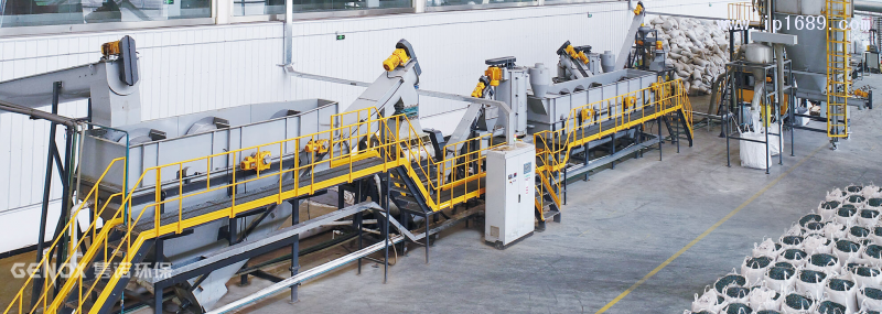 此外,該生產線可根據生產要求設定的含水率配備相應的離心脫水和熱風干燥系統,經過理論計算和多次實測,對粉碎、清洗、干燥環節的機械運作細節進行調整,避免因過度處理導致物料損耗。整線自動化控制,系統各單元之間關聯運作,將產能最大化的同時對可能出現的異常情況有預判功能,最大限度確保系統安全。