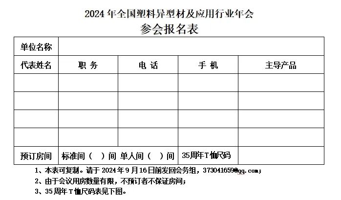 經研究并報請中國塑料加工工業協會批準,專委會定于2024年9月19-21日在浙江·杭州·華盛達雷迪森廣場酒店召開“2024 年全國塑料異型材及應用行業年會”。報到日期為9月19日。