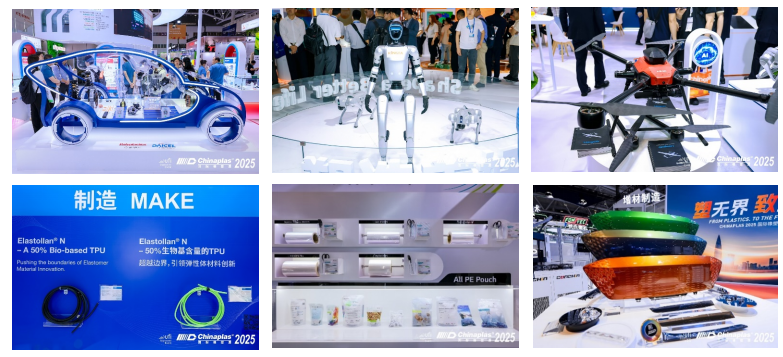以“變革?協作?共塑可持續”為主題,展會聚焦“循環經濟”、“數字化生產”、“創新材料”及“高端科技 中國制造”四大核心領域,集中展示了120余項全球/亞洲首發技術、3,800余臺機械展品及1,600多家原材料供應商的創新成果。從先進的注塑成型設備、AI 視覺檢測系統,到生物基材料、高性能阻燃材料,每一項技術突破都重新定義了行業標準。在人形機器人領域,PEEK、PPA等新型材料助力產品減重、提升續航;在低空經濟板塊,輕量化材料滿足無人機和eVTOL的嚴苛需求。這些創新成果為橡塑產業向高端化、智能化、綠色化轉型升級提供了強大動力。