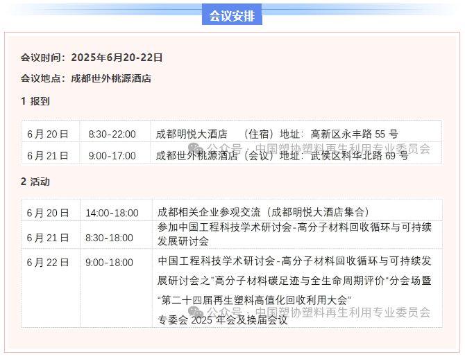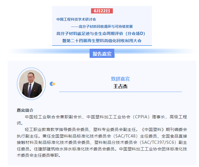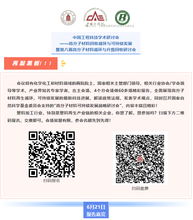 第二十四屆再生塑料高值化回收利用大會暨中國塑協塑料再生利用專業委員會2025年年會”在中國工程院舉辦的“工程科技學術研討會——高分子材料回收循環與可持續發展暨第八屆高分子材料循環與升級回收研討會”期間召開,并且作為其“高分子材料碳足跡與全生命周期評價”的分會場,對會員單位和參會代表來說,是近距離聆聽多位行業院士、專家報告,全面了解塑料及廢棄高分子材料循環利用的方向和最新動態的難得機會,對業界同仁來說是精神與知識的饕餮盛宴!