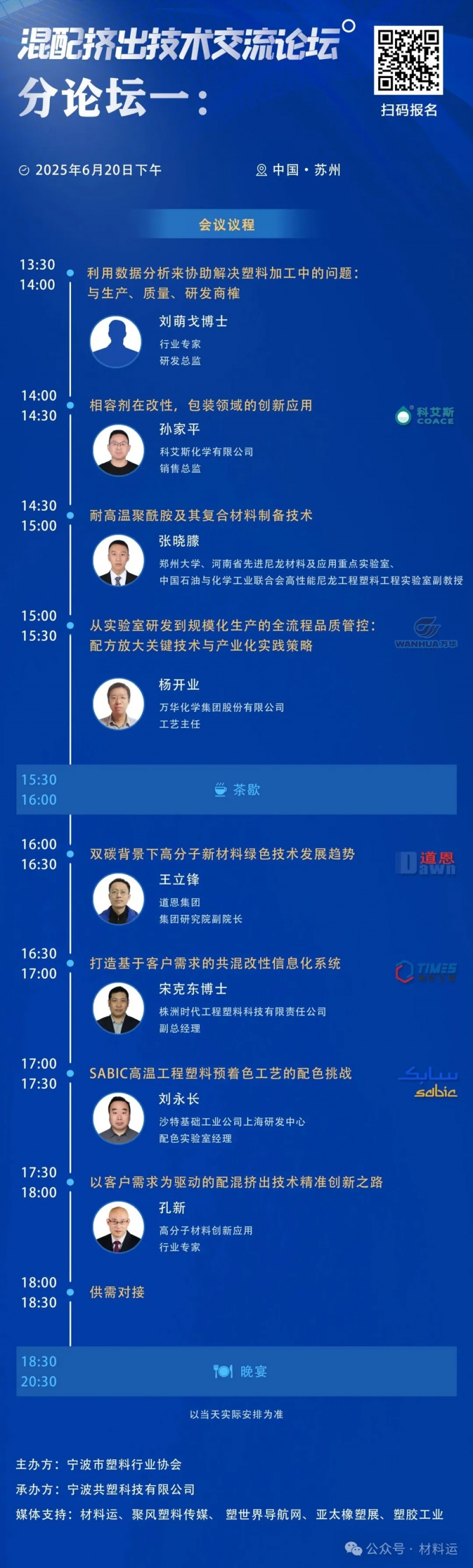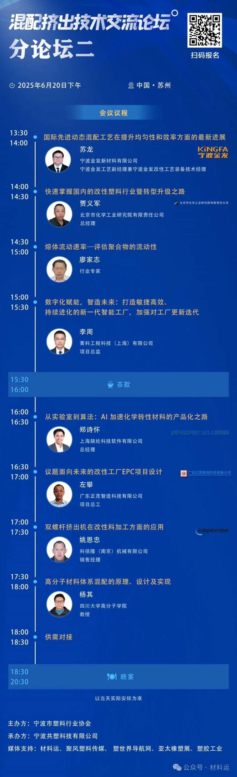 改性塑料行業頂尖專家報告分享、海內外知名配套設備工藝專家共享精華集萃內容。聚焦:配混,造粒,擠出,設備,工藝,配方及其助劑填料等專業領域技術