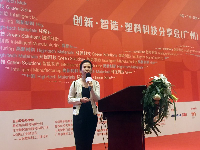 LG化學科長劉亞軍先生分享了LG化學工程塑料在汽車新材料和技術方面的應用;廣東伊之密精密機械股份有限公司新工藝技術開發總監陳熾輝先生作“技術突破Mu Cell攻克高光表面為主題的演講,講述了采用Mu Cell 實現高光表面和復雜紋路的創新解決方案;上海ABB工程有限公司銷售工程師李芳詳細講述了ABB機器人在塑料行業的應用。
