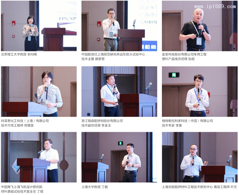 現場,與會嘉賓聚焦產業高質量發展的主題,從行業現存問題、發展趨勢、技術創新等方面進行交流探討。西班牙馬德里高等材料研究院教授王德義、北京理工大學教授李向梅、中國商飛上海飛機設計研究院材料基礎試驗技術室主任丁琨、上海功能阻燃材料工程技術研究中心高級工程師葉文、 浙江旭森阻燃劑股份有限公司技術副總經理李金玉、上海大學教授丁鵬等13位嘉賓發表主題發言,分享前沿技術、展示最新研究成果,為阻燃材料的新發展提供頂級智力支撐、指明道路。