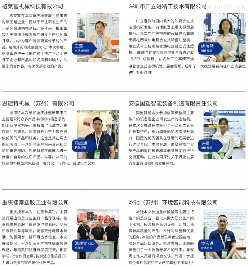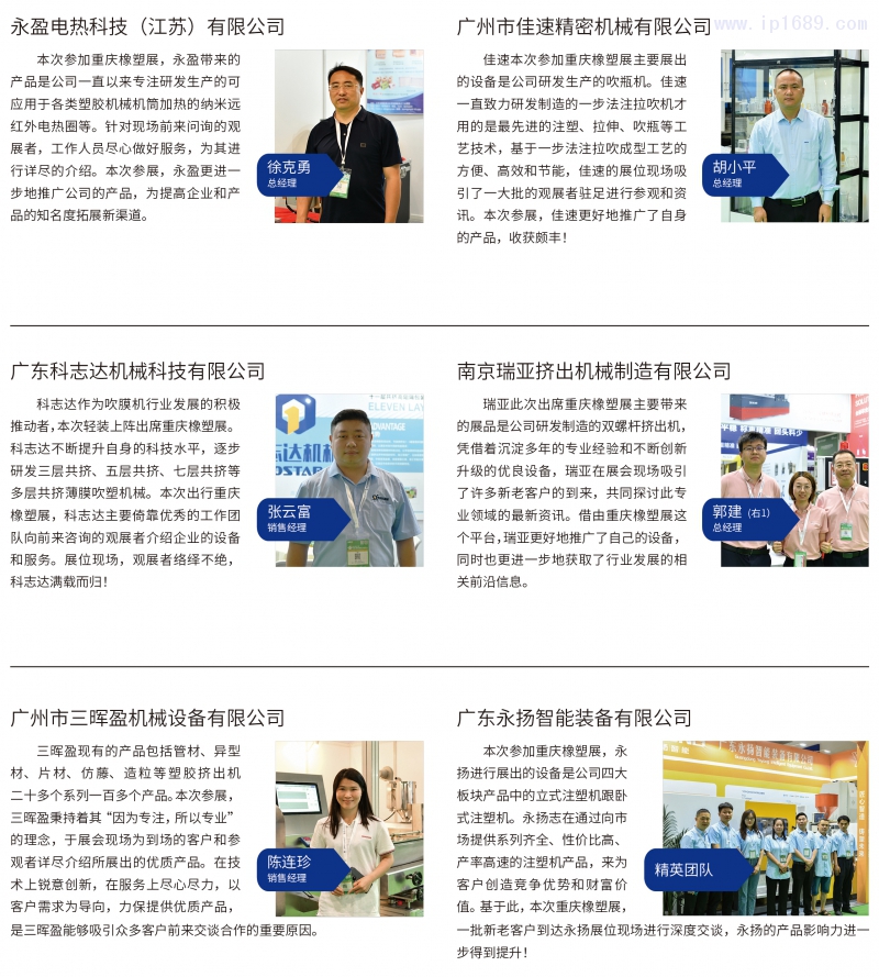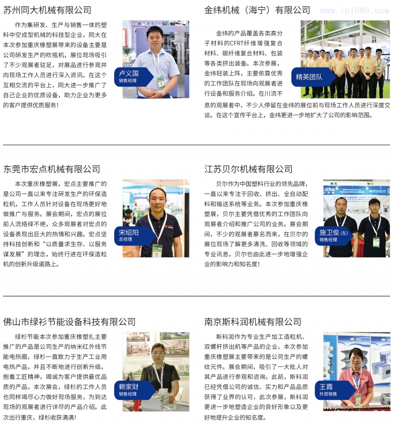 作為西部地區獨具規模、高度專業化的橡塑工業展,重慶橡塑展為行業的交流互動提供了不可或缺的服務平臺。并且重慶工業實力雄厚,汽車、食品包裝、家電等橡塑相關的產業也潛藏著橡塑行業未來發展的巨大機遇。這吸引了包括金緯、同大、格萊富、三暉盈、科志達、斯科潤、坤威等來自全國各地的知名企業參展,共同探索行業未來發展的新機遇。
