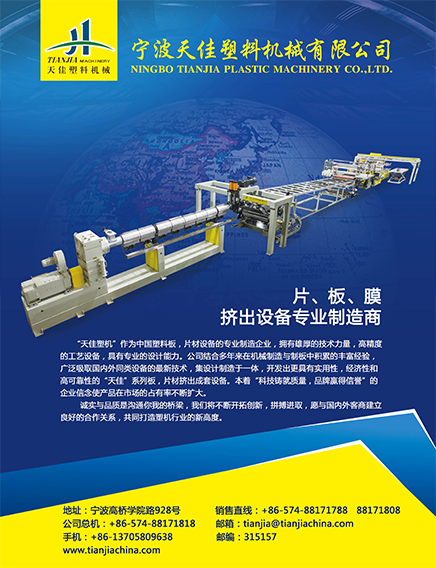 “天佳塑機”作為中國塑料板、片材設備的專業制造企業,擁有雄厚的技術力量,先進的工藝設備,具有領先的設計能力。公司結合多年來在機械制造與制板中積累的豐富經驗,廣泛吸取國內外同類設備的最新技術,集設計制造于一體,開發出更具實用性、經濟性和高可靠性的“天佳”系列板、片材擠出成套設備。本著“科技鑄就質量,品牌贏得信譽”的企業理念使產品在市場的占有率不斷擴大。