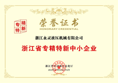 永靈液壓榮獲省“專精特新”中小企業稱號