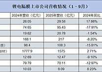 從鋰電隔膜上市公司的營收情況來看,2025年1-9月行業整體發展趨勢有所好轉...