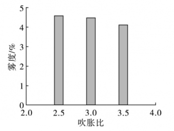 考察了中國石油蘭州石化公司低密度聚乙烯 2420 H 吹膜時吹脹比、加工溫度、薄膜厚度對薄膜 性能的影響。 結果表明:當吹脹比為 3.0 時,薄膜的加工工藝穩定,橫向拉伸斷裂應力較高,魚眼較少,透明 性較好
