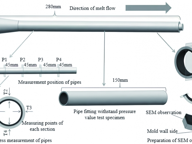 以長(zhǎng)玻纖增強(qiáng)聚丙烯(LGFR-PP)為外層材料、聚丙烯(PP)為內(nèi)層材料,通過(guò)氣體輔助共注塑工藝(GACIM)制備管件,對(duì)比研究了玻纖含量對(duì)管件壁厚、玻纖沿著軸向方向取向分布及抗壓強(qiáng)度的影響。結(jié)果表明,玻纖的取向程度...