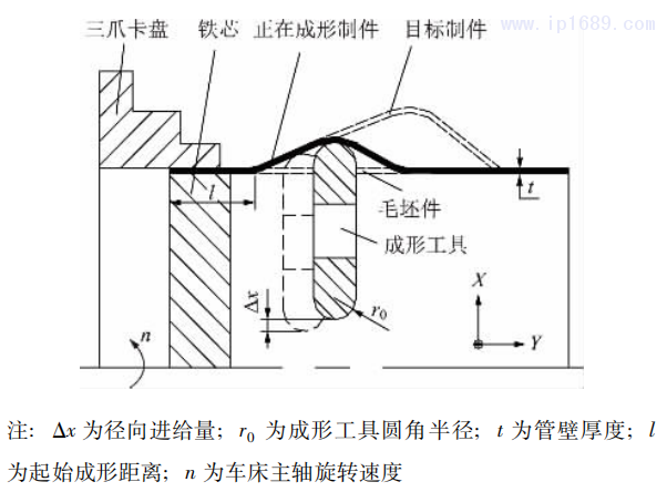 RAUJOL-VEILL J 等[6]提出一種對金屬短管端面進行翻邊的柔性成形工藝,該工藝運用結構簡單的滾輪工具,通過控制短管和滾輪之間的相對速度,對短管端部材料進行滾壓來成形出不同形狀和質量的部件,但其對滾輪的控制需要機床配備專門的伺服系統。HOMBERG W 等[7]提出一種高溫摩擦管材成形方法,該方法所用設備由一個帶有管材固定芯軸的高溫摩擦工具和一個能夠對管材進行調速和軸向移動的旋轉盤構成,通過控制旋轉盤的轉速并對管材進行軸向進給以實現管材的熱增量變形,該工藝的難點在于精準控制不同成形材料的熱敏感變形量。