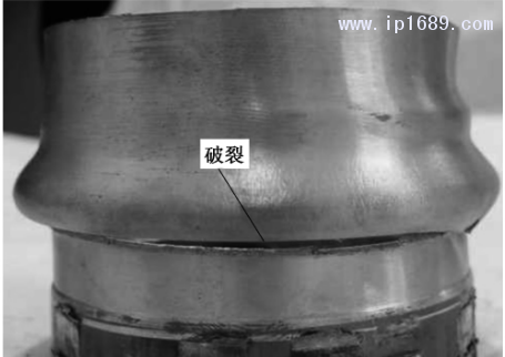 由圖11可知,成形力的大小與管壁厚度成正相關。在徑向進給量一定的條件下,管壁越厚,材料發生變形的體積越大,成形工具壓入材料時,受到材料的反擠壓抗力越大,所需的成形力也就越大。管壁厚度對設備的影響較大,材料越厚,所需設備的輸出功率越大,在設備一定的條件下,要成形較厚的材料需考慮多次成形的方法,此外壁厚太小成形件容易產生破裂,如圖12所示。