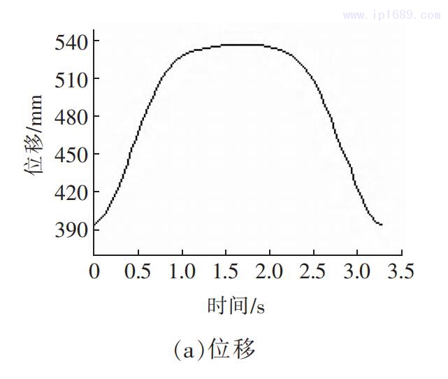 仿真時間為 3.3 s,仿真步數為 200 步 。后處理得到上支承座和曲臂運動曲線,如圖 7、圖 8 所示。
