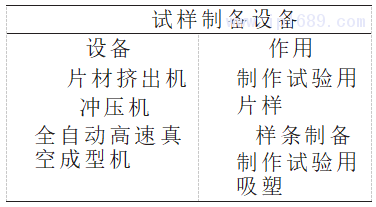 試樣制備設備見表 1