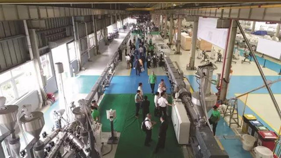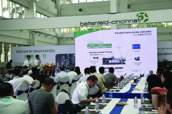 巴頓菲爾辛辛那提(中國)在佛山順德工廠舉行的設備演示會活動中,首次展示了用于PVC管材生產的全新雙螺桿擠出機。