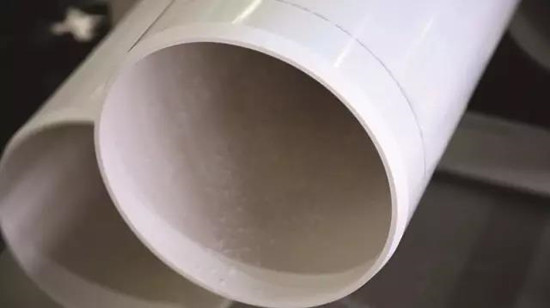 設備演示會現場擠出uPVC管材,管徑250mm,壁厚7.7mm。