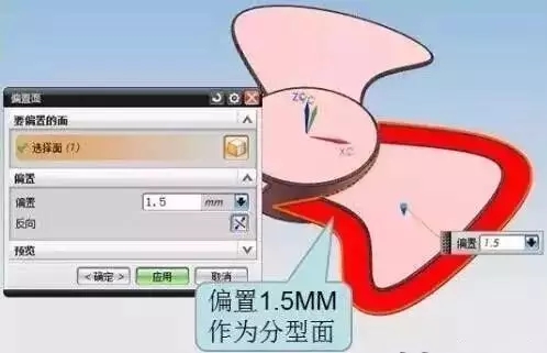 2、風扇的前后模面是兩個平行的面,所以分型面以其中一個面偏置即可,如下圖