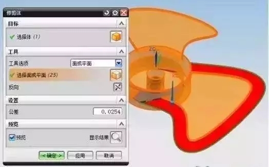 3、以產品為修剪邊界把多余的面修剪掉,如下圖: