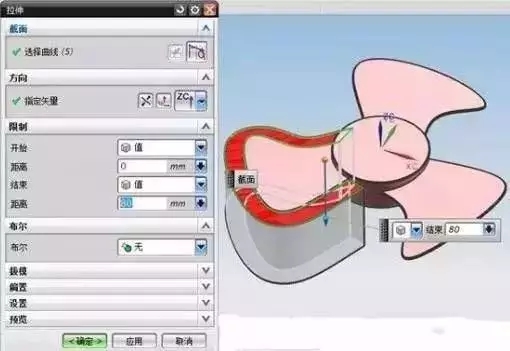 4、以紅色分型面拉伸出分型面實體,如下圖所示: