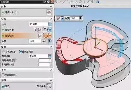 5、用移動對象-角度旋轉出另外兩個風葉分型實體,如下圖: