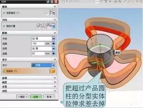 7、用產品求差后,再以做出來的分型實體再求差,如下圖: