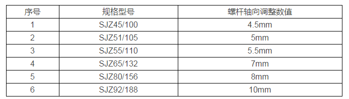 不同規格錐雙主機螺桿軸向竄動1mm螺桿機筒徑向變化尺寸: