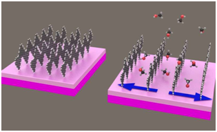 所示渲染圖顯示氣體分子擴大了石墨烯納米帶之間的間距。內布拉斯加州的AlexanderSinitskii及其同事們提出:該現象一定程度上解釋了納米色帶如何使傳感器的靈敏度有了前所未有的提升。