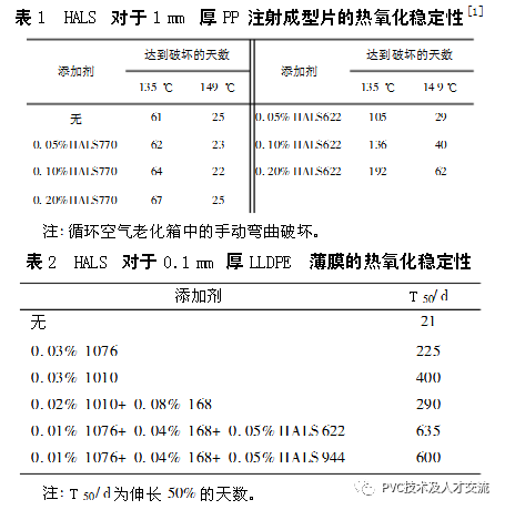 3. 受阻胺光穩定劑HAI 在PVC中的應用