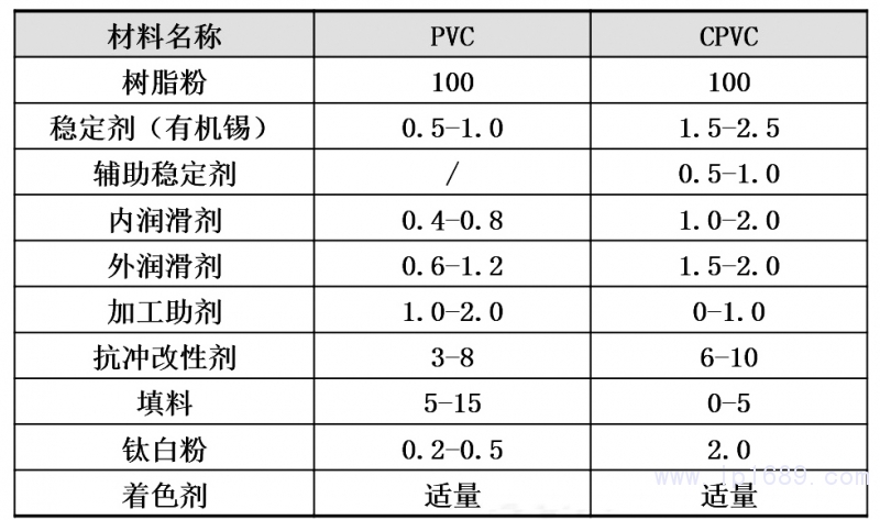 ·加工助劑主要為ACR,它是丙烯酸酯類共聚物,可以提高樹脂的塑化程度,但CPVC樹脂由于熔融粘度較大,它比PVC樹脂更容易塑化,因此在擠出加工CPVC管材時應少加或不加。