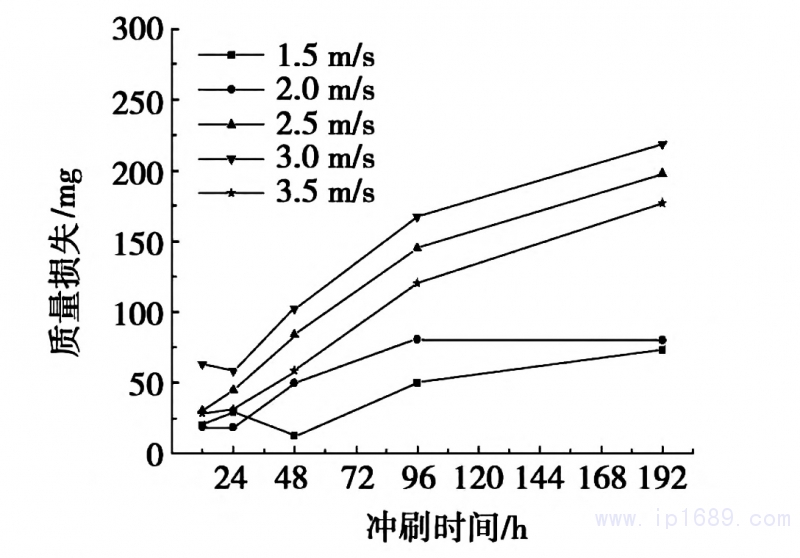 圖1、B10銅鎳合金管材隨沖刷時間變化的質量損失