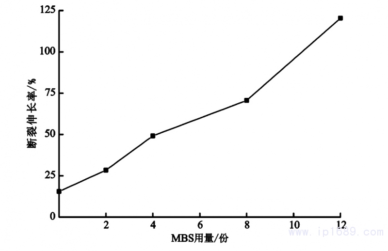 圖7 MBS用量對PVC斷裂伸長率的影響