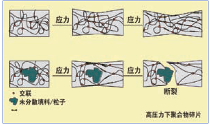 圖2、未分散的填料顆??赡軐е逻^早失效