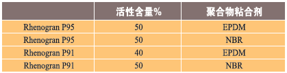 表6、聚合物結合芳綸纖維Rhenogran P95和P91的種類