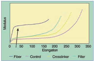 圖11、芳綸纖維加入橡膠后對模量的直接影響