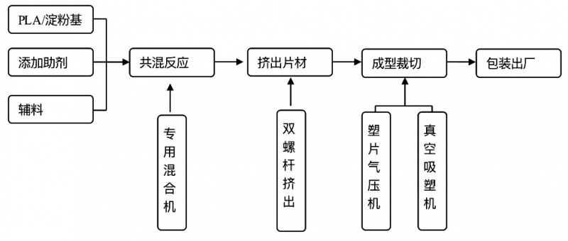 PLA聚乳酸\淀粉基的產品加工工藝流程圖