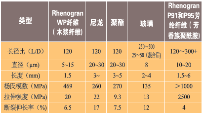 相對于其它增強材料,短纖維的獨特幾何形狀有助于在加入橡膠化合物時提供正面的物理性能。這個幾何形狀用長徑比來描述,它被定義為纖維長度/纖維直徑(圖1)。即使在不能采用低份量補強的情況下,長徑比可使短纖維與常規微粒形成緊密連接結構來實現增強。因此,短纖維提供了優異的強度特性,減少了高應變力造成的缺陷。表1列出了一些短纖維類型的典型長徑比,其中包括兩個是本文的重點: Rhenogran WP(木漿纖維)和Rhenogran P91和P95(芳綸漿粕纖維)。這兩種纖維類型都能提高橡膠復合物的彈性模量和抗拉強度。芳綸纖維具有極高的長徑比和韌性,可提供最大程度的增強。