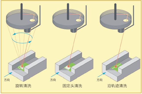 ● 沿著軌跡清潔: 清潔頭的方向跟隨軌跡,是槽底部或兩側理想的精確清洗MLC 500特性包括以下內容 (圖4):