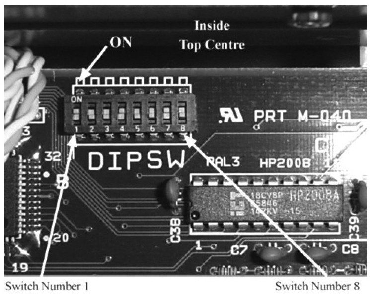 ①控制方式的設置,控制方式是指中空成型機的類型,分為連續擠出式和儲料缸式兩種方式,機型不同,壁厚控制系統的控制方式也不一樣。在基礎設置時,必須根據中空成型機的類型選擇對應的控制方式,具體由MOOG控制器內部的6#微動開關來選擇,ON為連續擠出式,OFF為儲料缸式。撥動微動開關時,壁厚控制器必須斷電。選擇完成后,MOOG壁厚控制器面板上對應的狀態指示燈將會點亮,“Continuous”代表連續擠出式,“Accumulator”代表儲料缸式。