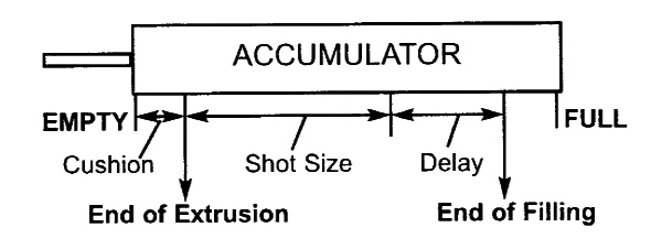 儲料缸位置傳感器的基本設置包括:空缸(EMPTY)位置,滿缸(FULL)位置,以及保持方式。保持方式包括:擠出保持(EXTRUSION FIXED)或填充保持(FILLING FIXED)。
