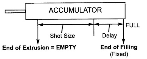 保持方式指的是從儲料缸射料量計量的起始點。擠出保持(EXTRUSION FIXED)的射料量(SHOTSIZE)計量的起始點為空缸位置(EMPTY);填充保持(FILLING FIXED)的射料量(SHOT SIZE)計量的起始點為滿缸位置(FULL)。