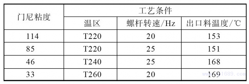 表2 不同門尼粘度丁基再生橡膠的工藝條件