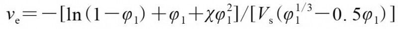 式中,χ為丁基再生橡膠與環己烷的相互作用系數;Vs為環己烷的摩爾體積。