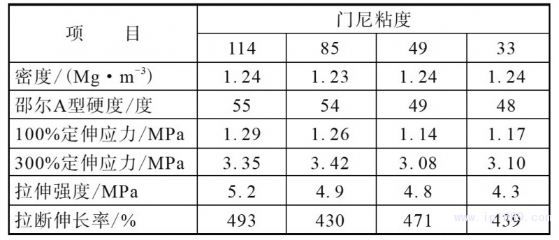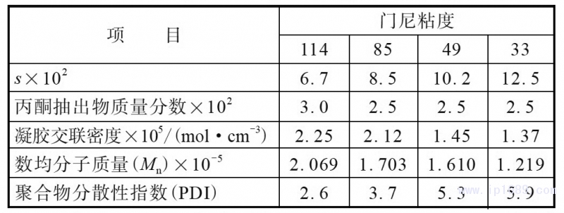 不同門尼粘度丁基再生橡膠的理化性質和結構見表4。