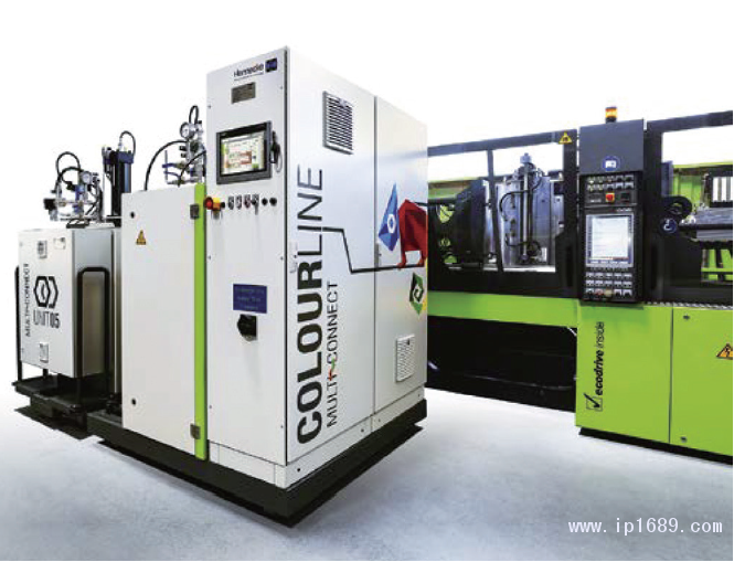 德國亨內基公司和奧地利恩格爾公司的聯合項目通過將異氰酸酯組分和涂料組分分成不同的單元實現了多種有色聚氨酯系統的柔性生產。Colourline Multi-Connect技術(圖1)是一種即插即用的模塊化系統,它最多可搭載七個涂料模塊,每個模塊配有獨立的混合頭。將所需的涂料模塊與異氰酸酯中央計量單元相連即可開始使用。通過這一智能原理,涂料更換無需任何沖洗或清潔措施即可在15分鐘內完成。