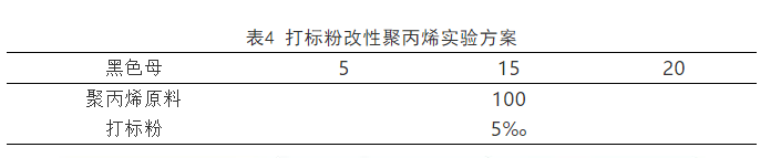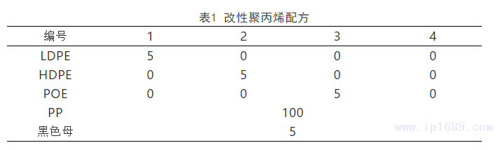 蓄電池殼體材料使用的聚丙烯是主要是由PP、PE嵌段共聚而成,后續改性過程中會增加增韌劑以及色母等。所以,一般生產原料聚丙烯是由LDPE、HDPE、POE、黑色母等共混改性而成,所以項目組探討了各類成分對黑色聚丙烯塑蓋激光打標效果影響的研究。具體實驗方案如下: