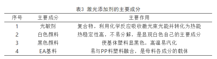 3.1 聚丙烯中各成分對激光打標質量的影響分析
