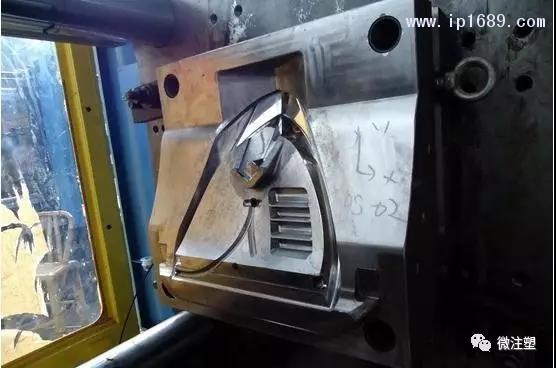 氣輔注塑是采用所謂的“短射”方法,即先在模腔內注入一定量的料(通常為滿射時的70-95%),然后再注入氣體,實現全充滿過程。熔膠注射量與模具氣道大小及模腔結構關系最大。氣道截面越大,氣體越易穿透,掏空率越高,適宜于采用較大的“短射率”。這時如果使用過多料量,則很容易發生熔料堆積,料多的地方會出現縮痕。如果料太少,則會導致吹穿。如果氣道與流料方向完全一致,那么最有利于氣體的穿透,氣道的掏空率最大。因此在模具設計時盡可能將氣道與流料方向保持一致。
