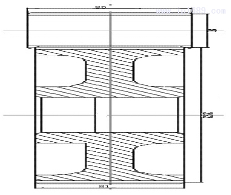 壓縮比(i):加料段螺桿的螺槽深度h1與均化段螺槽深度h3的比值,即i=h1/h3。取i=2.1,則h1=i·h3=2.1×2.6=5.4 mm。
