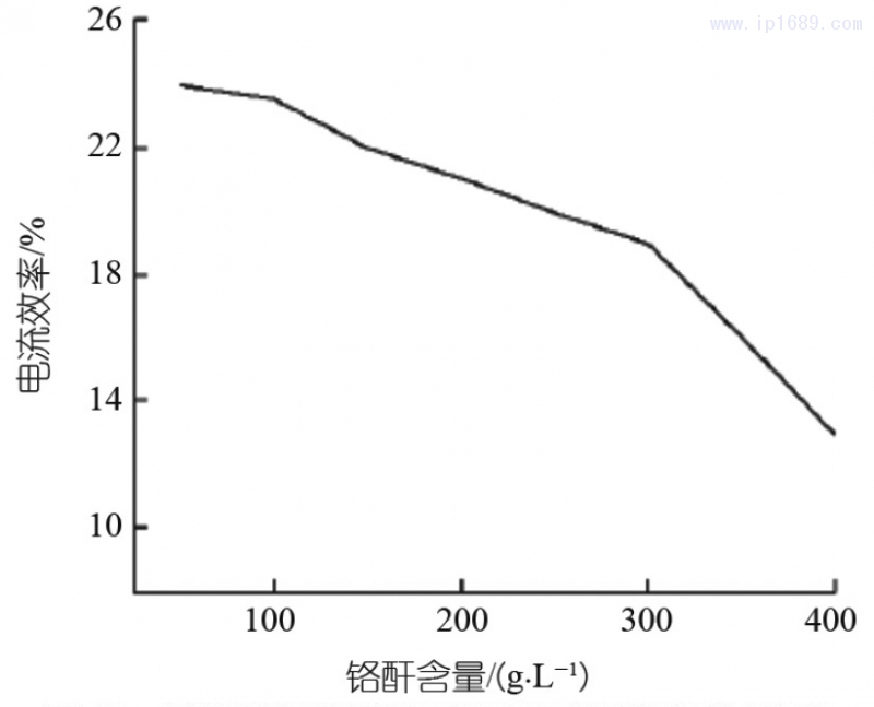 圖 3 鉻酐的質量濃度對電流效率的影響