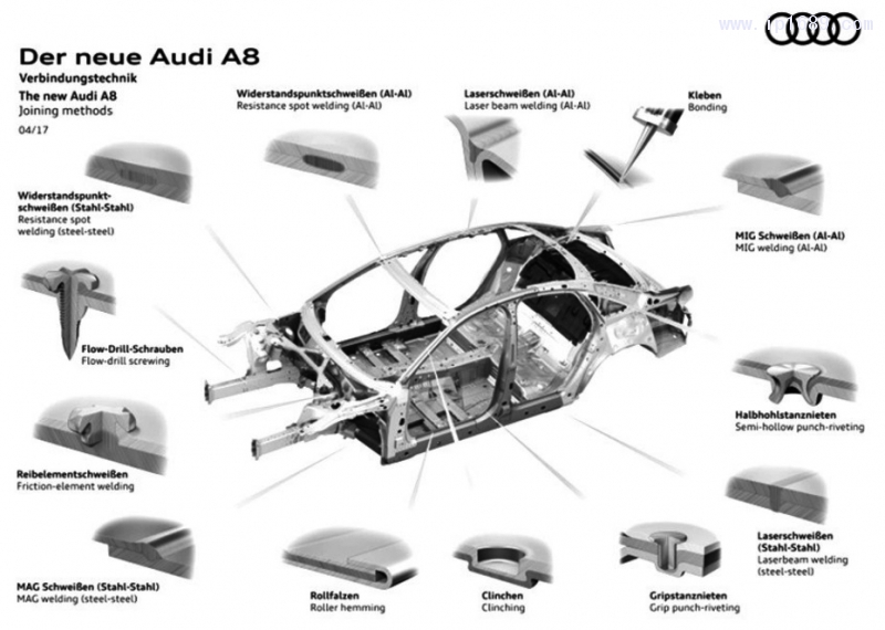 圖 3 全新奧迪 A8 車身連接技術[5]