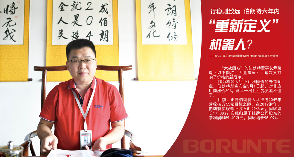 或許2049年太遙遠,而2025年就在不遠的未來。六年前,伯朗特新三板掛牌,再過六年到2025年伯朗特真能“重新定義”機器人嗎?時間是最好的證明,而2020年,尹董事長只為解決伯朗特應用商掙錢的問題而努力奮斗。